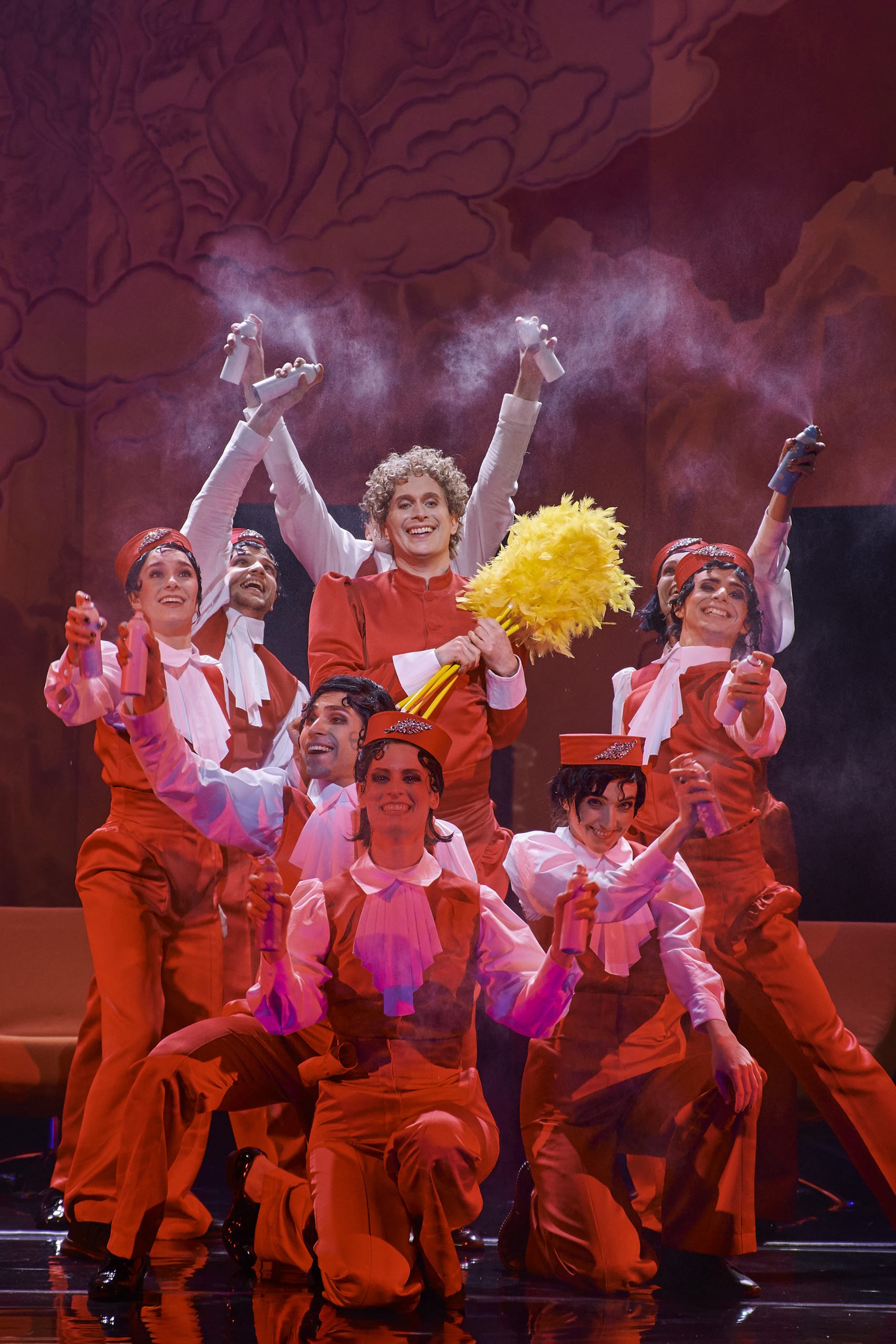 JFA: Ich hatte wahnsinnig viel Spaß dabei, dieses Stück in einer Inszenierung von Otto Pichler selbst zu spielen. Und ich hatte öfter den Moment, dass ich auf der Seitenbühne in der Gasse stand, diese tolle Musik gehört und mich dann ein bisschen »reingeträumt« habe: Was ich da sehe und was ich aus diesem Material machen würde, aus dieser Musik und aus diesen Szenen und Charakteren. Mir war es deshalb wichtig, von Anfang an einen »Spielplatz« zu kreieren, wo wir uns als Kreativteam und auch mit dem Ensemble wirklich austoben konnten. Wir haben so wundervoll eigene und lustige Charaktere in der Besetzung. Deshalb war es ein großer Spaß für jeden dieser Charaktere, eine Drehung in der Handlung, den perfekten Auftritt, die ideale Nummer oder eine lustige Pointe zu finden, über die ich als Schauspieler vorher nie nachgedacht habe. Als Regisseur konnte ich mir den Raum dafür geben und tatsächlich neue Facetten des Stückes entdecken – das war wunderbar.
