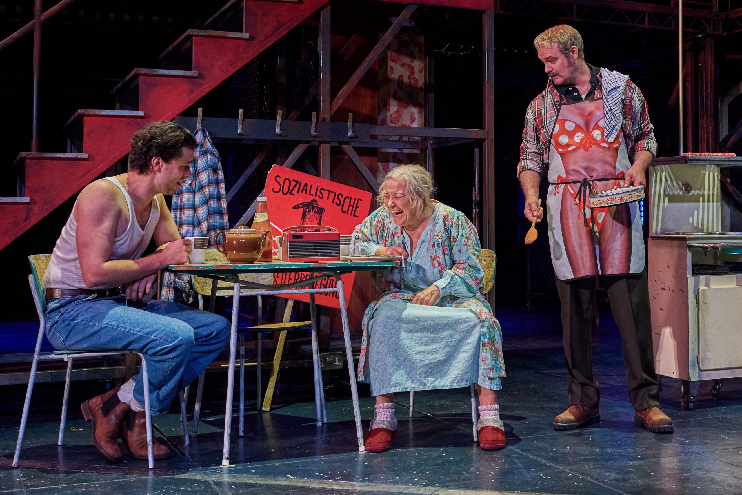 An seiner Seite stand Tyler Grünberg als Michael, etwas weniger bedingungslose Rampensau als Justin Périer, aber mit einer schönen Feinfühligkeit und im Zusammenspiel mit Lemmerlich sehr harmonierend. Neu in der Rolle des Vaters ist Livio Cecini, sein Vater berührt und ist durch und durch menschlich. Insbesondere die kleinen Momente, die die Rolle ausmachen und den Wandel in ihr zeigen, wurden von ihm sehr schön klar herausgearbeitet, sowohl die Verzweiflung als auch sein Stolz waren spürbar und sorgten dafür, dass der Charakter als noch besser gezeichnet wahrgenommen wurde. In der Figur der Mrs Wilkinson steht nun Gabriela Ryffel auf der Bühne, sie gehörte schon in der vergangenen Saison zu der Cast und hat nun den Sprung zur Erstbesetzung zurecht gemacht. Sie lässt etwas mehr Gefühl zu, gesanglich ist sie stark und tänzerisch absolut rollendeckend. Sabine Martin als Grandma ist dem Stück erhalten geblieben, dass sie die Rolle nun schon ein Jahr immer weiterentwickelt und perfektioniert hat, merkt man der Rollenzeichnung an, gesanglich ist sie stark und immer eine Freude zum Beobachten. Paul Elias Gierlinger als Bruder Tony überzeugt vor allem in den eher kleineren Momenten und Gesten, z. B. wenn er Billy vor den Polizisten »rettet«, zeichnet sich sein Handeln durch die Liebe des älteren Bruders und Beschützers aus. Rudi Reschke, ebenfalls ein Wiederholungstäter in der Cast, spielt in dieser Saison fest den Boxtrainer George und ist alternierender Vater. Bei der Wiederaufnahmepremiere stand er als George auf der Bühne und zeigte nicht nur sein schauspielerisches Talent und seine charismatische Stimme, sondern überzeugte auch mit seiner komödiantischen Seite als Maggie Thatcher das Publikum von sich. Als Mr Braithwaite sitzt nun Daniel Nothnagel am Klavier und er zeigt dort sein überraschendes Tanztalent mit Sinn für Comedy-Timing. Stefanie Köhm hat nun die Rolle der Mutter übernommen und singt sie mit viel Feingefühl. Aus dem Ensemble noch herausstechend ist Alex Hallas als älterer Billy, der mit seinem Tanztalent auf sich aufmerksam macht.