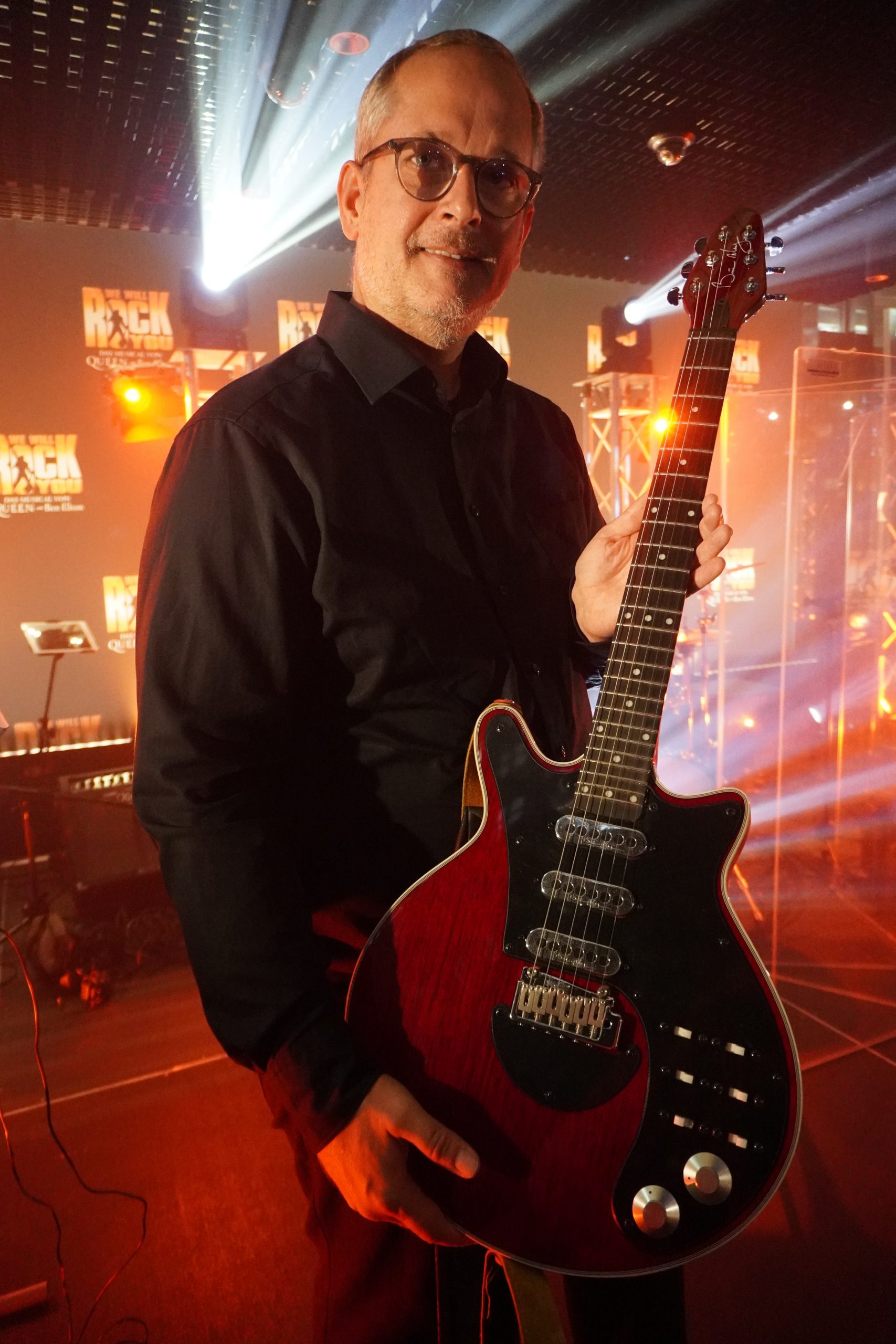 So richtig Spaß hat Boris Ritter, der musikalische Leiter, an dem Stück. Denn er darf mit seinen Musikern auf der Bühne sitzen und zur großen Freude aller, gibt es zwei Original »Brian-May-Red-Special-Gitarren«, die der legendäre Gitarrist von Queen erfunden und zu Beginn der Karriere der Rockband selbst gebaut hat.