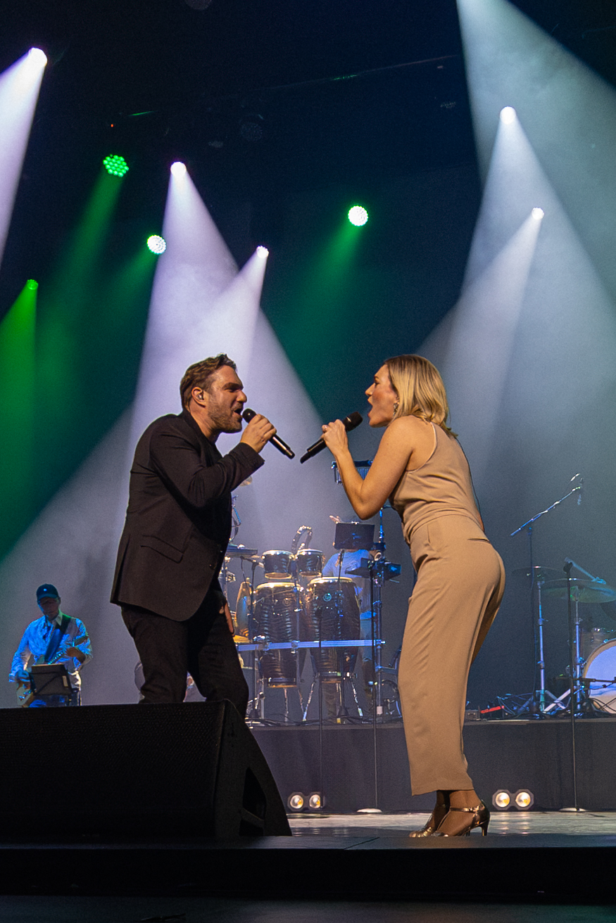 KK: Ich glaube, bei unseren Konzerten, insbesondere aber bei »2 Legenden, 1 Konzert«, erwartet den Zuschauer ein wirklich einzigartiges Erlebnis. Und ich möchte mal jeden Zuschauer bitten, sich an irgendeinem Punkt im Konzert umzudrehen, und dann das zu erleben, was wir von der Bühne aus, jeden Abend bei diesen Konzerten, sehen dürfen: Strahlende Gesichter und einfach nur glückliche Menschen. Das ist so schön und das teilen wir genau so auf der Bühne auch. Wie ich anfangs schon gesagt habe, wir machen ein Miteinander, wir haben so viel Spaß auf der Bühne, wir haben eine unfassbare Band auf der Bühne, die uns den Rücken deckt, die uns nach vorne treibt und auf die wir immer zählen können, mit der wir richtig Gas geben können. Jeder Zuschauer kann bei diesen Konzerten berührt werden, sich gehen lassen. Tanzen. Lachen. Einfach einen wunderschönen Abend mit uns haben. Feiern und sich von dieser ganzen Musik und diesen tollen Hits von ABBA und Udo Jürgens an einem Abend verzaubern lassen und einen wunderschönen Abend haben.