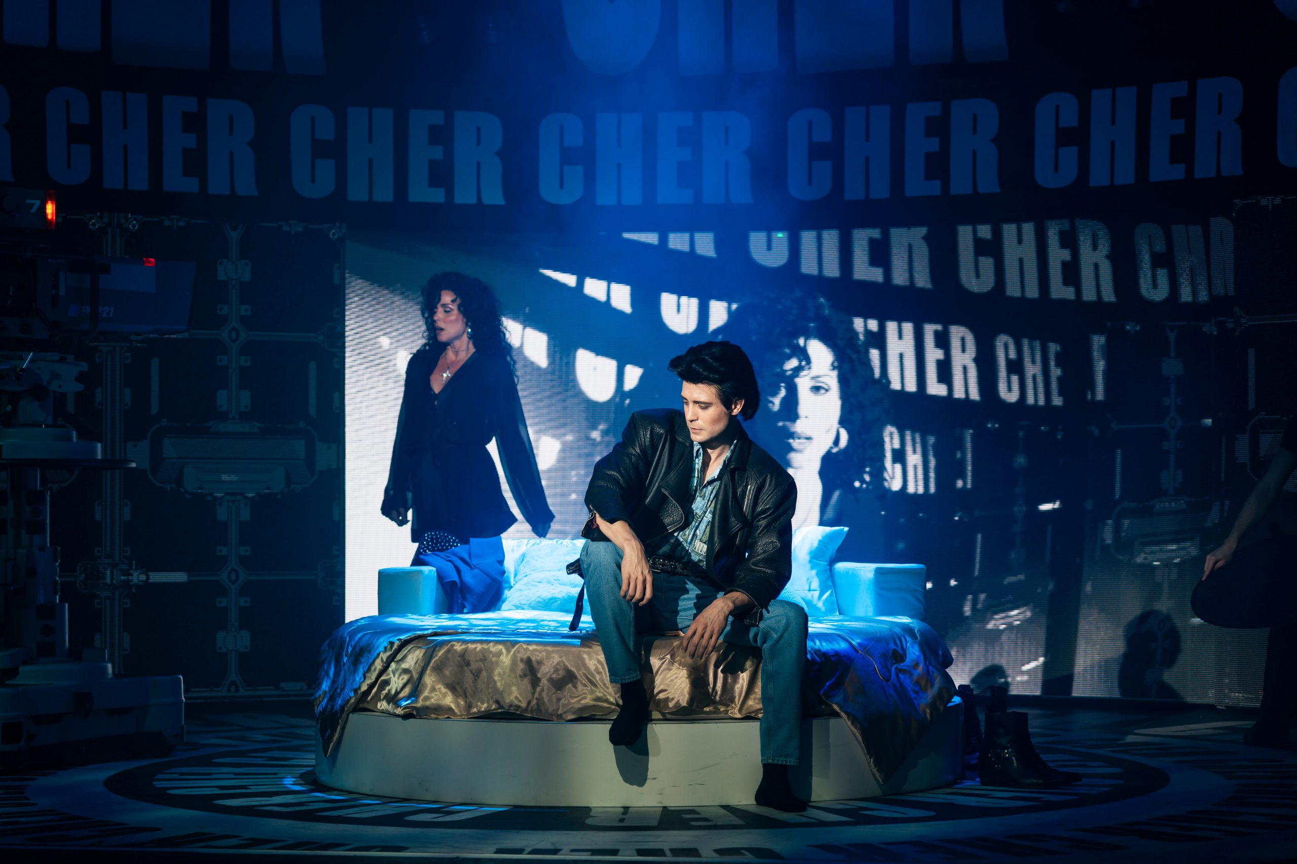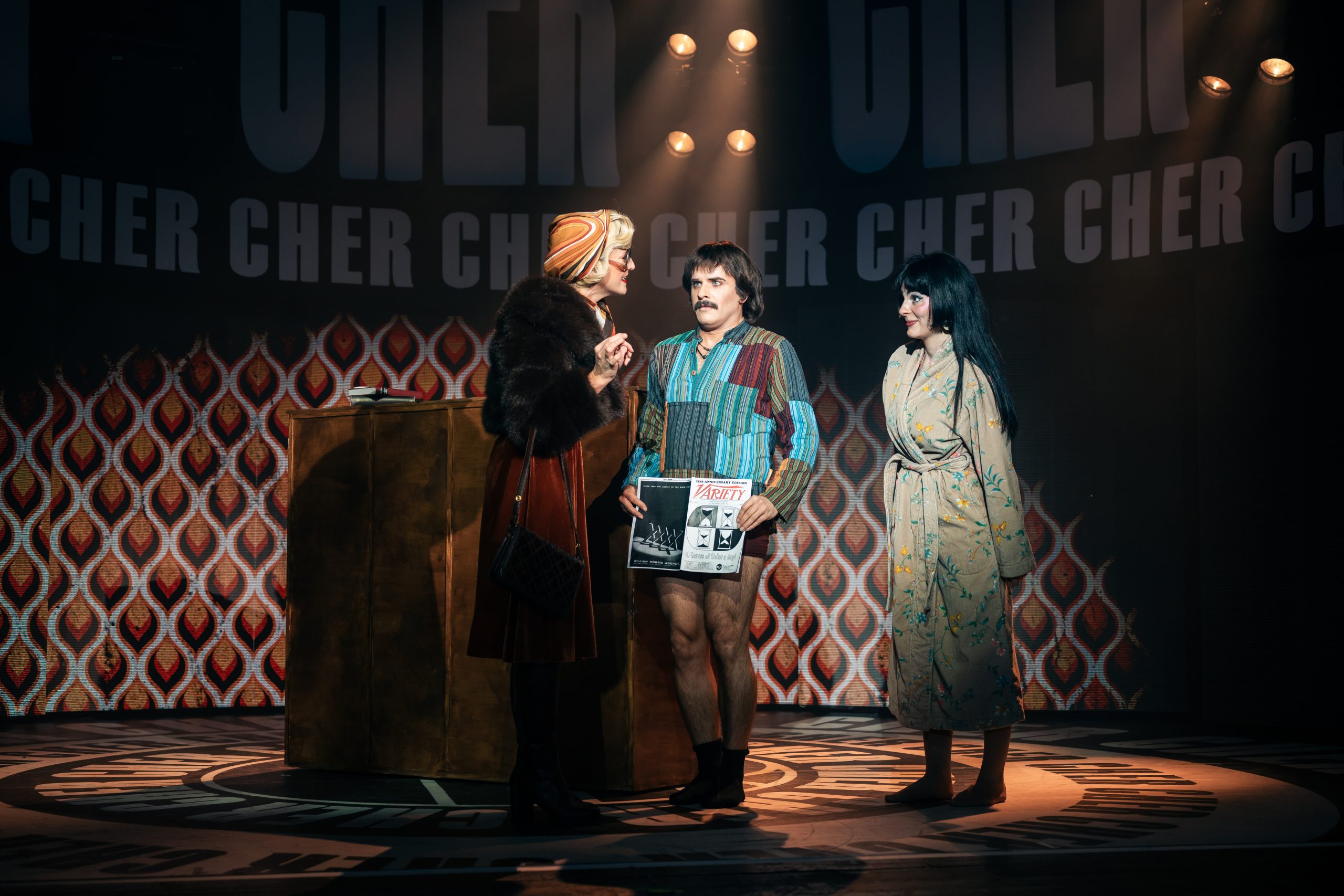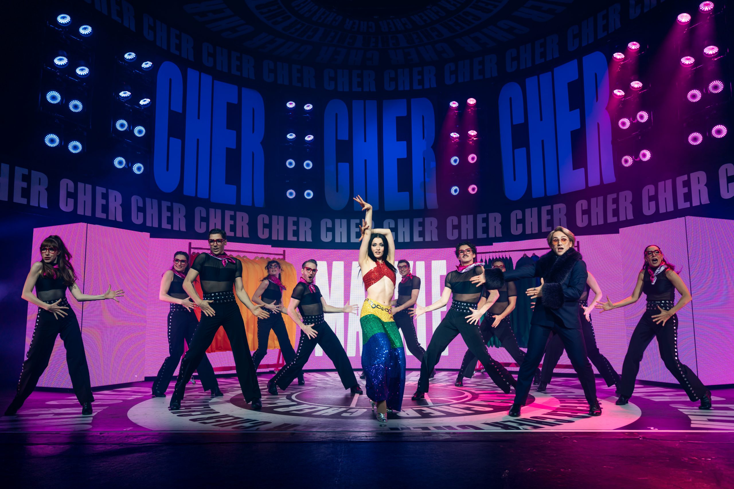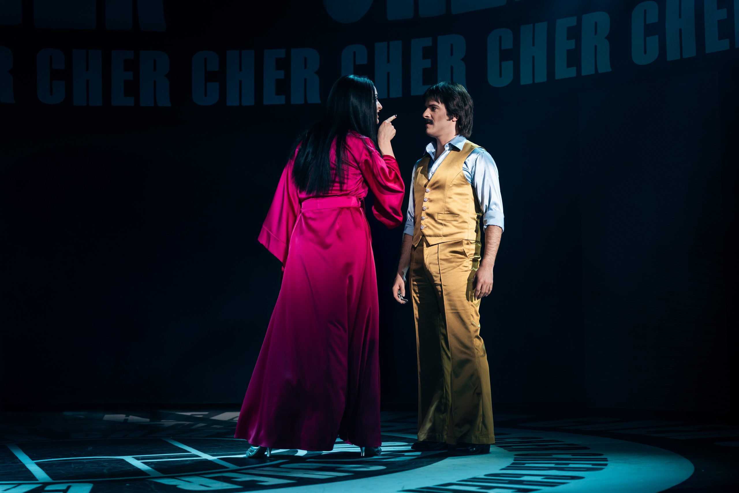 Erzählt wird die Lebensgeschichte von Cher, die in jungen Jahren gleich mit Sonny einen Seelenverwandten getroffen hat und groß durchstartete. Um die mittlerweile 60-jährige Bühnenerfahrung gut darstellen zu können, wird die Hauptperson des Abends gleich von 3 Darstellerinnen verkörpert – und gesungen: Jede repräsentiert eine Lebensphase, sie träumen, zweifeln und kämpfen miteinander bzw. auch füreinander. Anders als erwartet sind die 3 Chers auch oft gleichzeitig auf der Bühne, beratschlagen sich und bringen so eine ganz neue Dynamik in die Show. Dieses Konzept stammt von Grammy-Preisträger Rick Elice, und es ist eine gelungene und sehr unterhaltsame Show daraus geworden, die von der starken Regie von Christopher Tölle profitiert. Stimmlich sind die drei Ladys (Sophie Berner, Hannah Leser und Pamina Lenn) alle dem Original sehr ähnlich, und doch bringt jede einen eigenen Stil mit hinein, was für ein Feuerwerk in den Ohren sorgt. Zusammen mit dem wirklich sehr gut gelösten Bühnen-/Lichtdesign von Andrew Exeter (endlich mal keine schon für viele Touren wohl obligatorischen drehbaren Treppen!), den bunten und schrillen Kostümen von Heike Seidler (teilweise versehen mit bekannten Original-Kostüme von Emmy-Preisträger Bob Mackie), dem poppigen Disko-Sound und einer starken Cast bringt das ganze einen sehr unterhaltsamen Abend, der viel zu rasch endet!