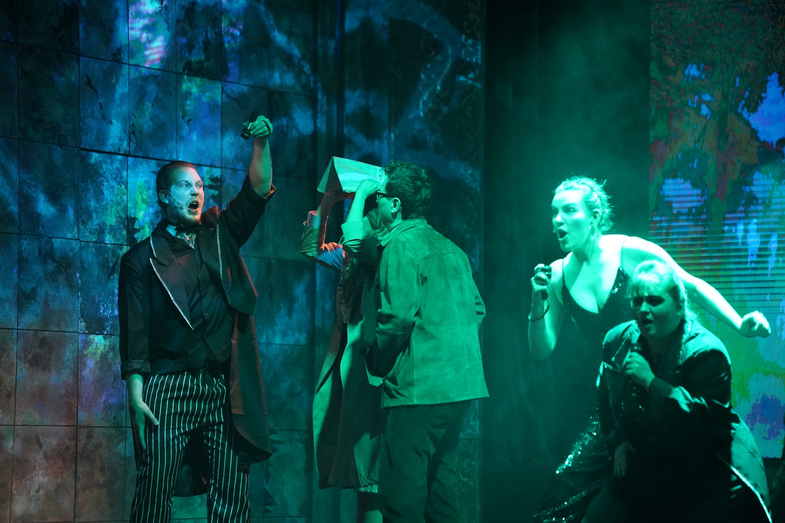 Ebenso unverzichtbar für den großen Erfolg der Produktion sind Taro Morikawa, der für die Regie zuständig ist, und Eva Klug, die die abwechslungsreichen und eindrucksvollen Szenen choreografierte. Beide haben über Monate hinweg mit dem Ensemble intensiv an jeder Szene gearbeitet. Der musikalische Leiter ist Gregor Sommer und er sorgt dabei nicht nur für die perfekte Harmonie der Band, sondern begleitet die Aufführung selbst virtuos am Piano. Wie uns verraten wurde, sind die Bandmitglieder alle Musiklehrer – und deren Schüler:innen waren die Gäste der Generalprobe. Erlebnispädagogik auf bestem Niveau.