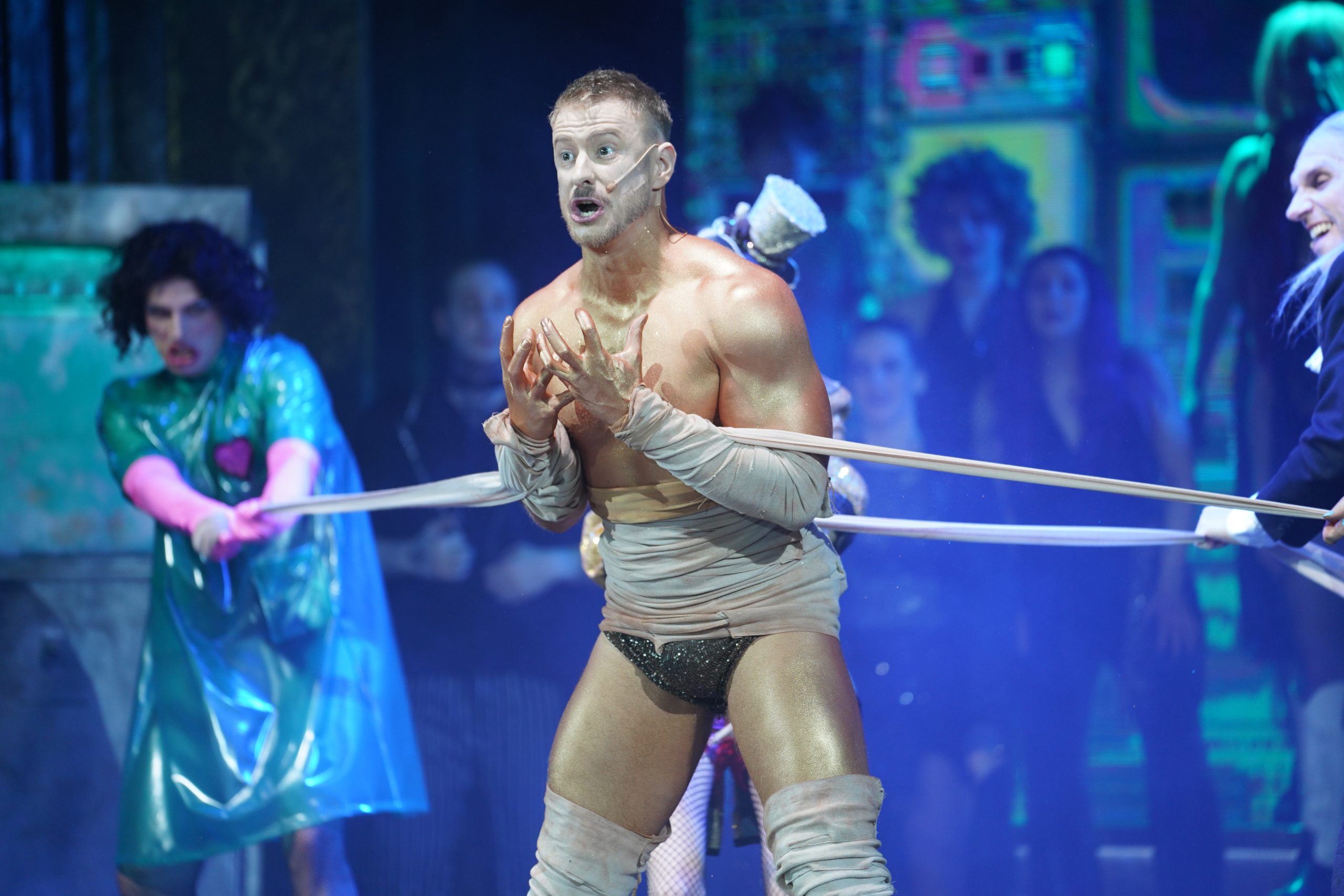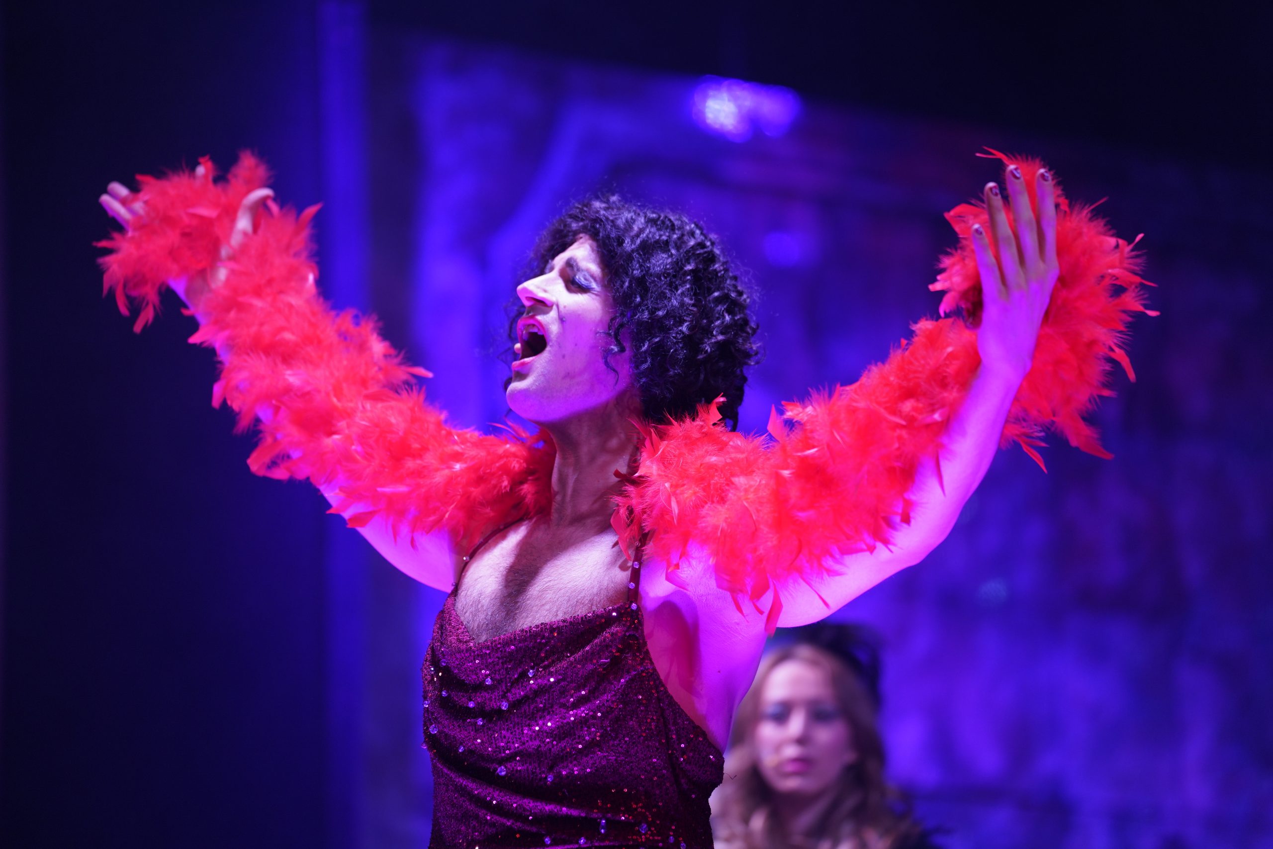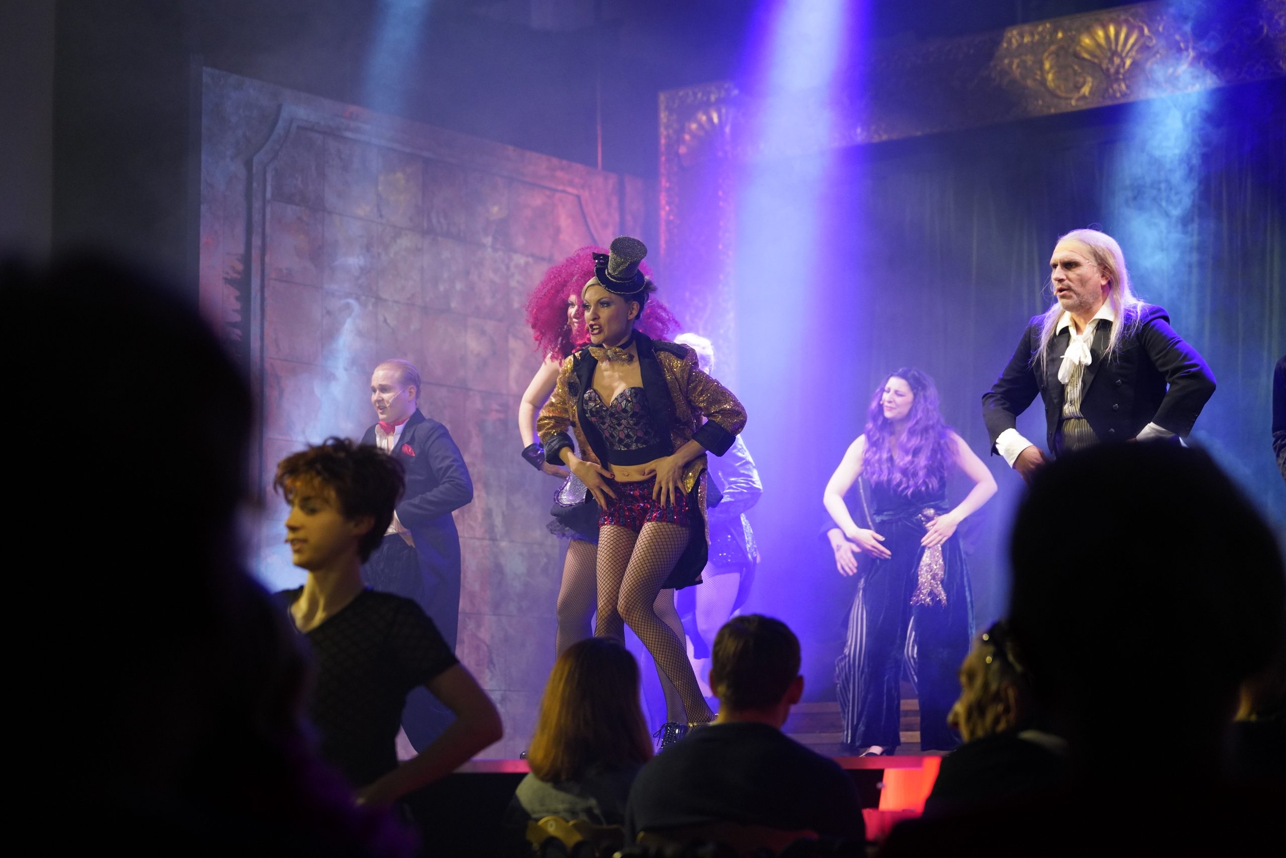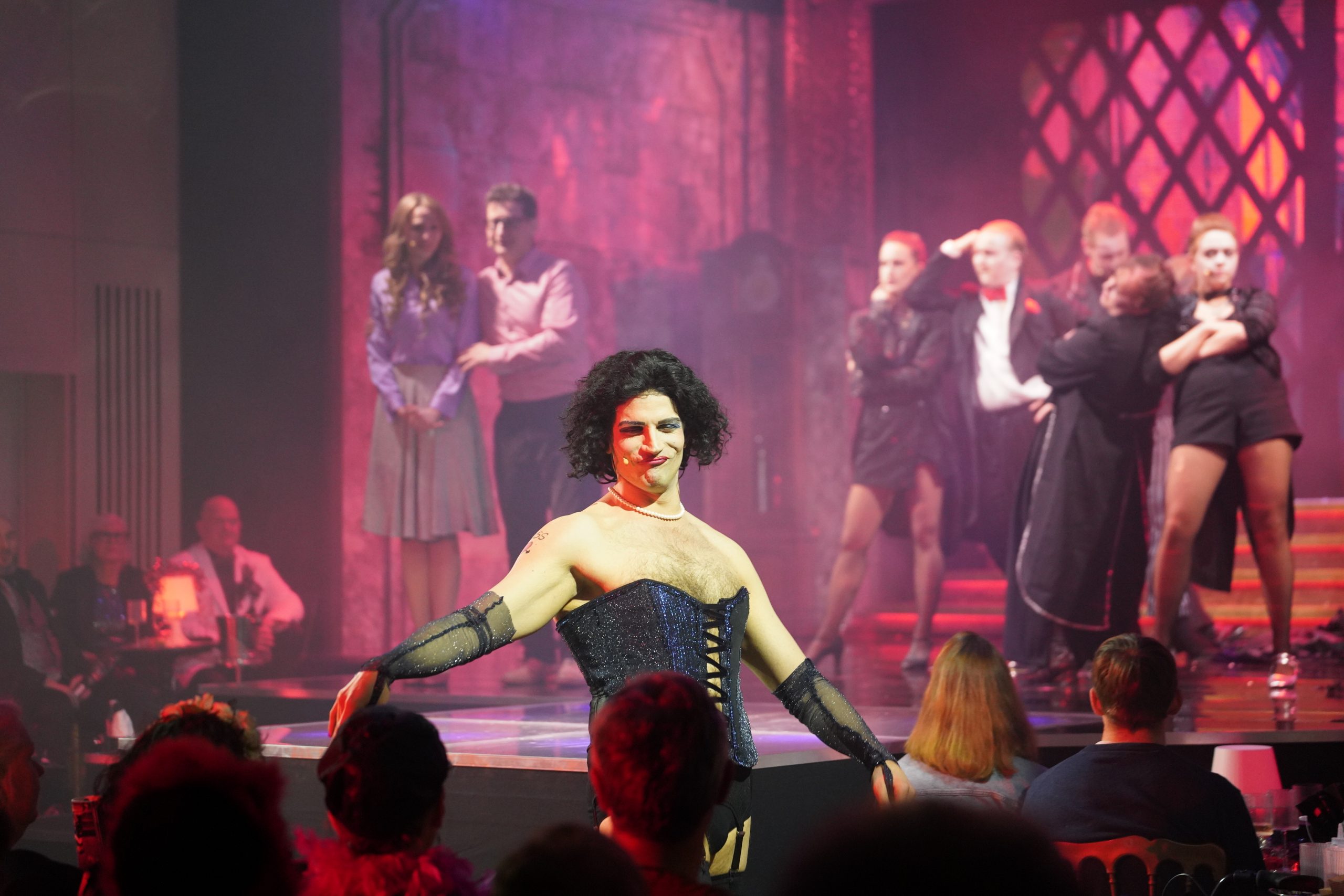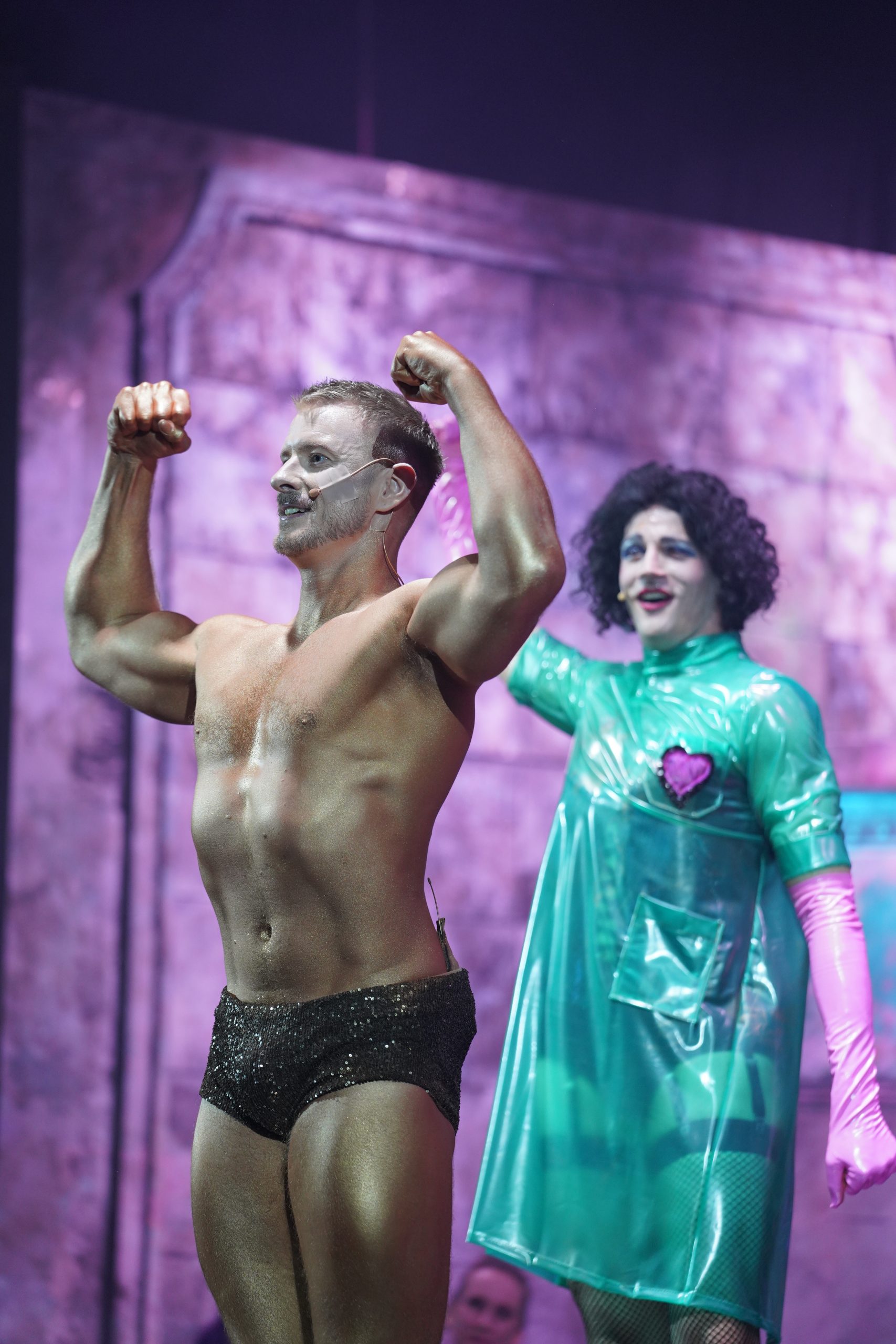 Auch Lukas Rapp als Frank‘N‘Furter setzt ein Ausrufezeichen. Die Rolle bietet bereits viel, doch Rapp treibt sie zur Spitze eines sehr heißen Eisbergs. Er ist zu 100% auf der Bühne und flirtet gleichzeitig mit jeder einzelnen Person im Raum. Dazu kommen eine kraftvolle Stimme, ein Spiel mit allen zur Verfügung stehenden Körperteilen und vor Leidenschaft sprudelnde Augen. Raunen ging mehrfach durch das Publikum und man sah bei Menschen jeden Alters und jeden Geschlechts dieselbe Faszination ins Gesicht geschrieben.
