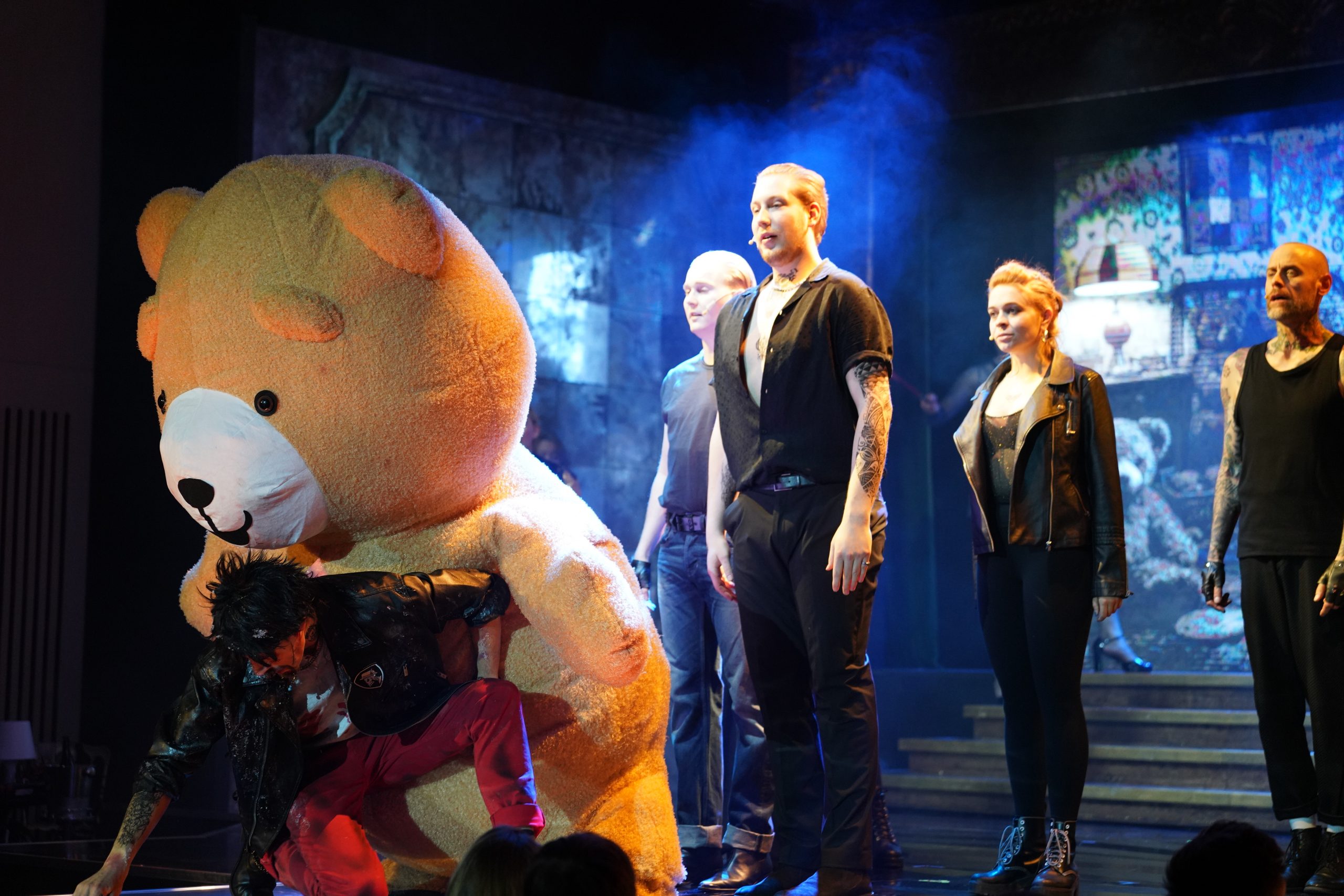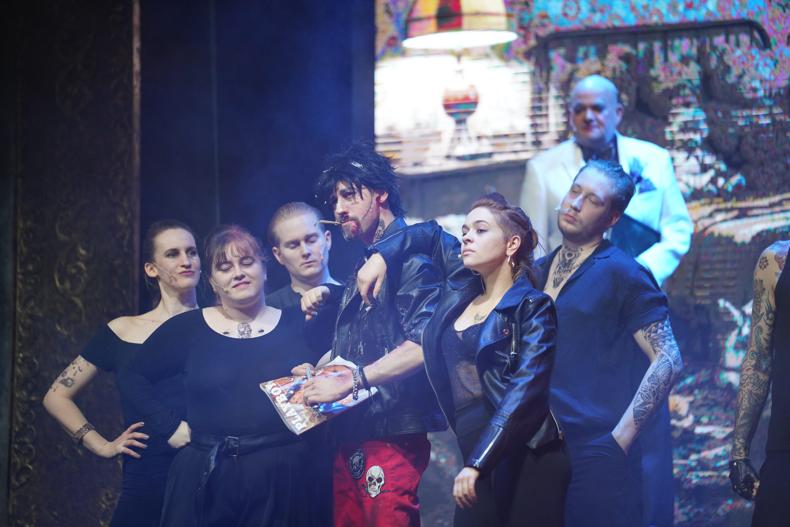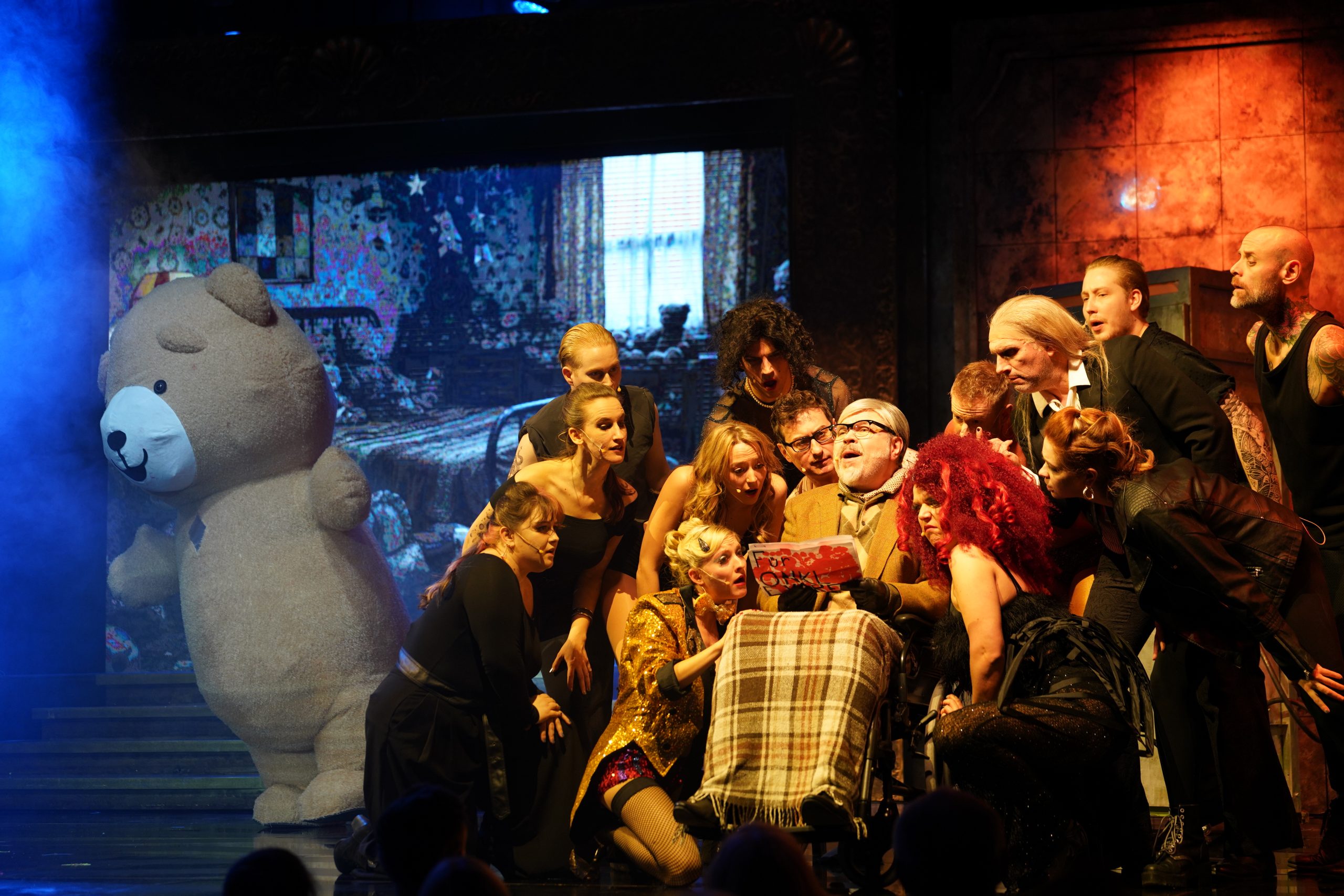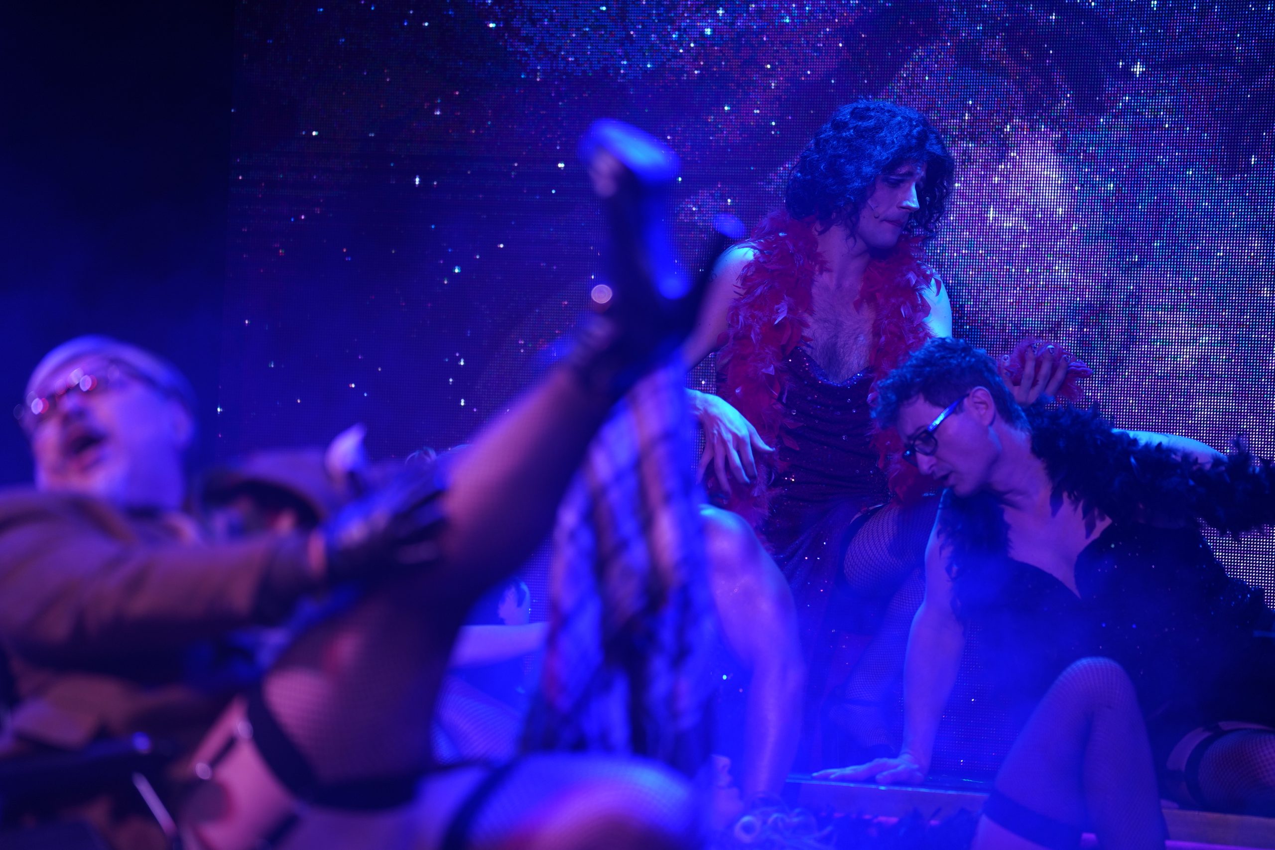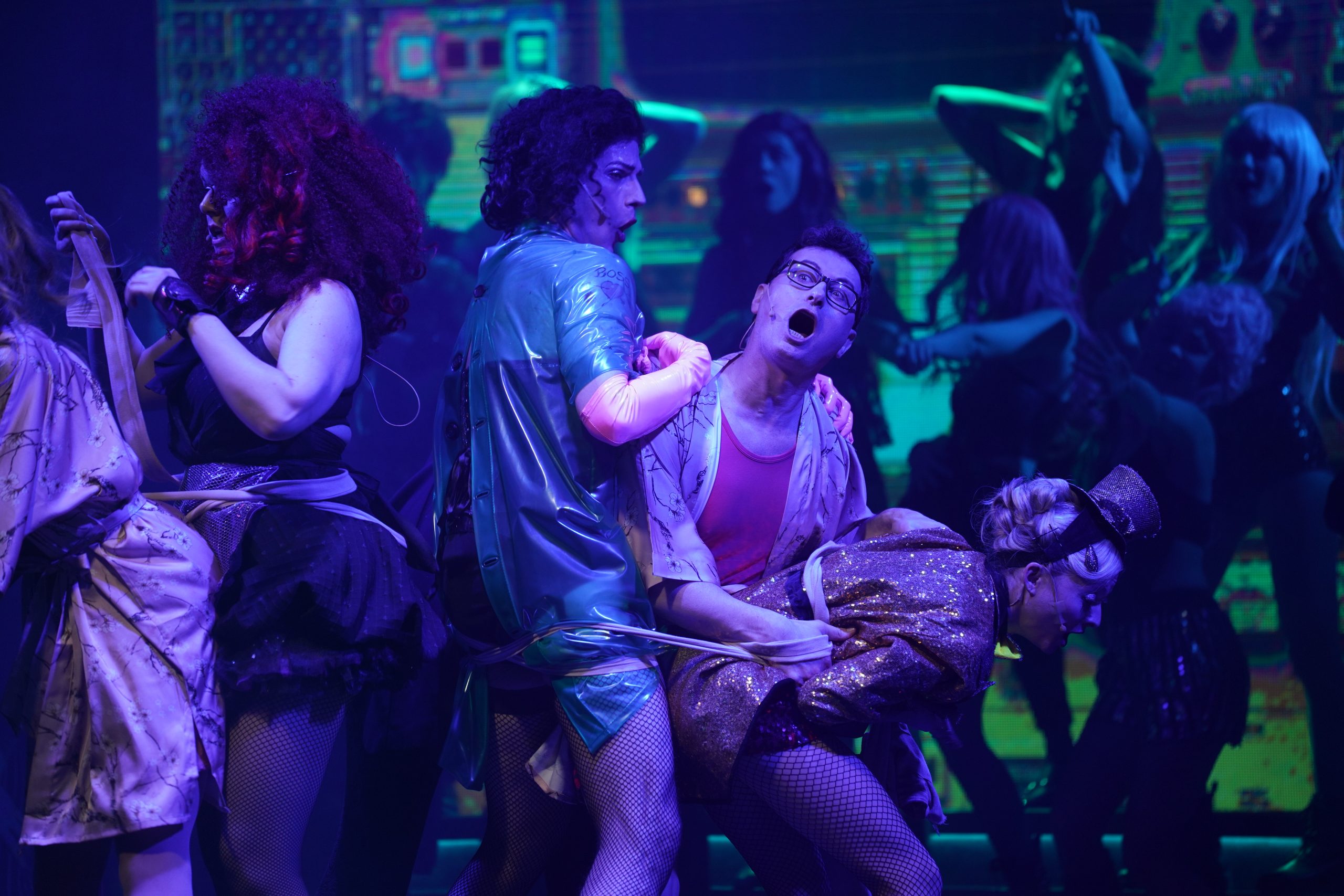 Auch Lukas Rapp als Frank‘N‘Furter setzt ein Ausrufezeichen. Die Rolle bietet bereits viel, doch Rapp treibt sie zur Spitze eines sehr heißen Eisbergs. Er ist zu 100% auf der Bühne und flirtet gleichzeitig mit jeder einzelnen Person im Raum. Dazu kommen eine kraftvolle Stimme, ein Spiel mit allen zur Verfügung stehenden Körperteilen und vor Leidenschaft sprudelnde Augen. Raunen ging mehrfach durch das Publikum und man sah bei Menschen jeden Alters und jeden Geschlechts dieselbe Faszination ins Gesicht geschrieben.
