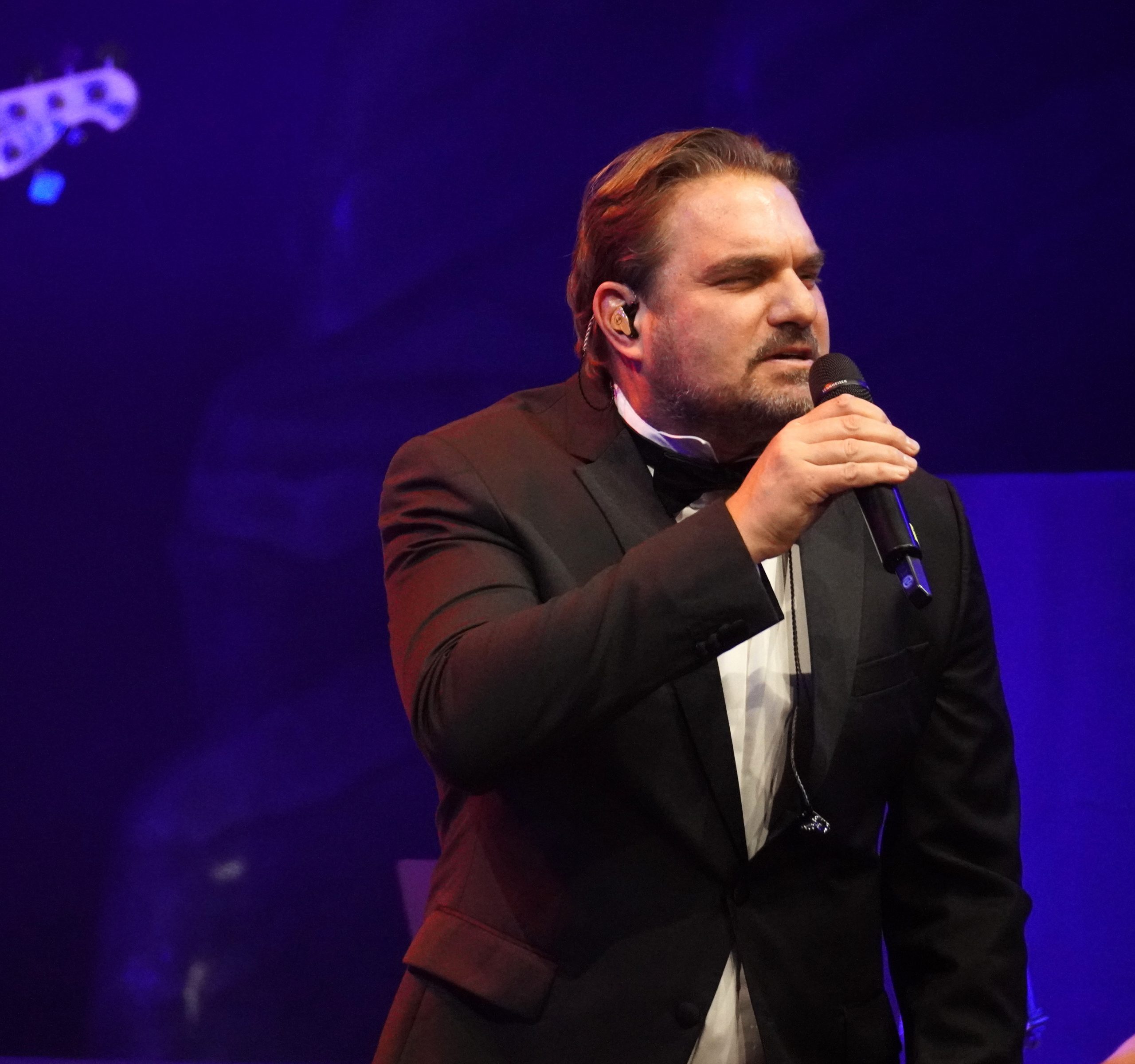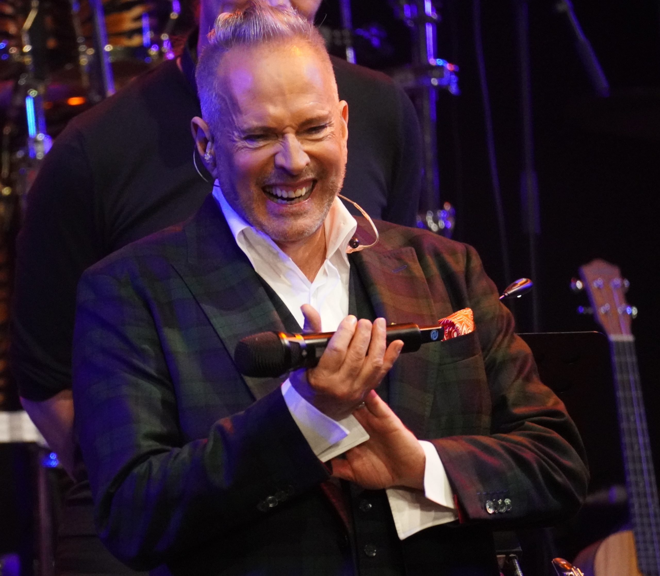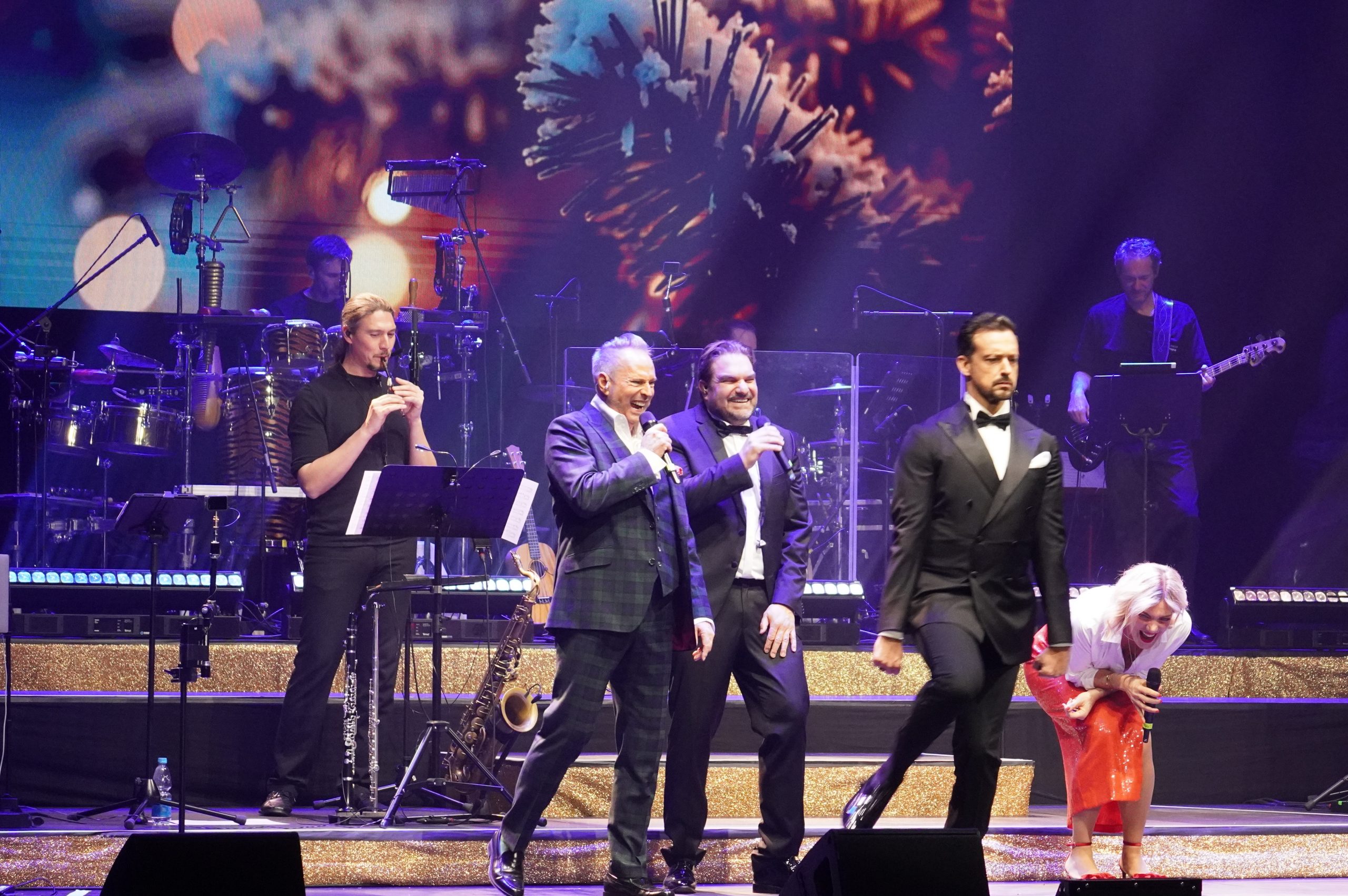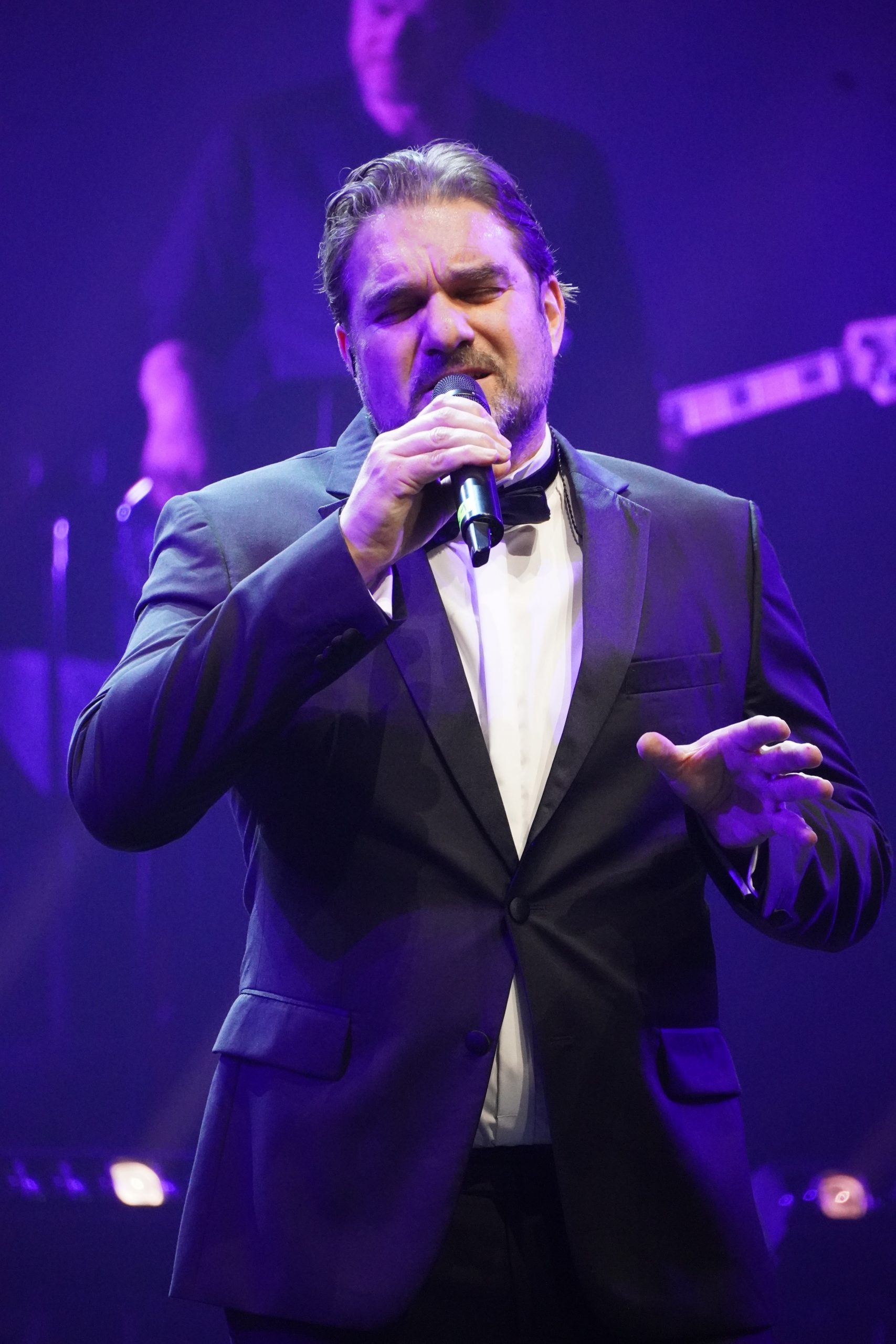 Wenn ich schreibe fünf, dann zähle ich bewusst Maximilian Mann dazu, der diesen Abend gekonnt charmant und lustig moderierte. Aber dazu später mehr. Mit Aisata Blackman, aktuell als Killerqueen in »We will rock you« zu sehen, Roberta Valentini, die in Stuttgart noch aus »Wicked« und »Ghost« bekannt sein dürfte, dem Graf Krolock Kevin Tarte und Karim Khawatmi (»Ich war noch niemals in New York«) startete der Abend gleich weihnachtlich mit ›Merry Christmas Everyone‹ und so ging es auch weiter. ›All I want for Christmas‹, ›Santa Baby‹, ›Winter Wonderland‹ und ›Santa Claus is coming to town‹ waren nur einige der Weihnachtslieder, mit denen es fröhlich, aber auch besinnlich losging.
