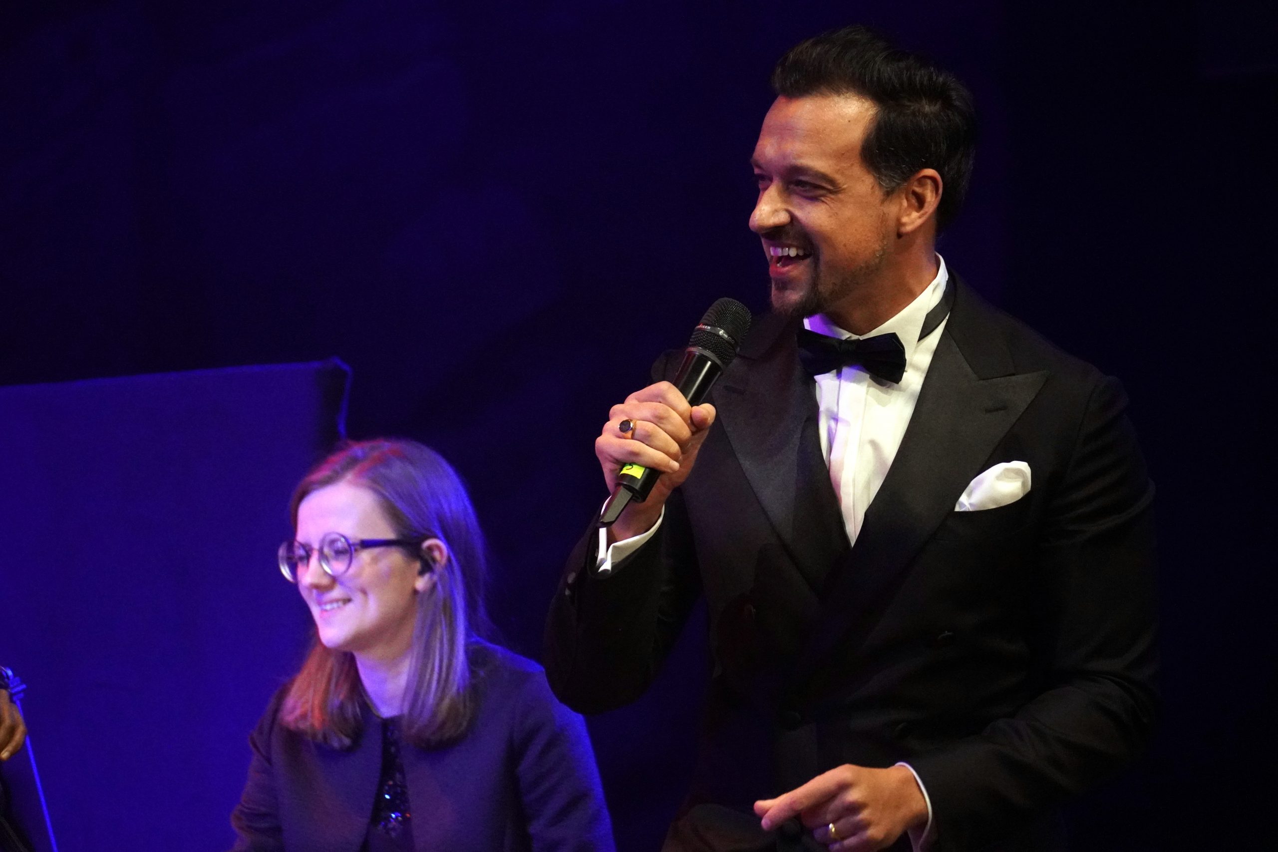 Maximilian Mann, der in Stuttgart u.a. als Dschinni in »Aladdin« und Phoebus in »Der Glöckner von Notre Dame« zu sehen war und der heute als Künstlerischer Leiter die »Eiskönigin« betreut, sorgte mit seinen Moderationen für viele Lacher. Vor allem auch seine selbst verfassten Gedichte, die so ziemlich alle Themen des Lebens, besonders aber auch die Deutsche Bahn aufs Korn nahmen, kamen wirklich gut an. Dabei geht es oft nicht ohne Selbstironie (»Sie wollten einen gutaussehenden Moderator – aber der hatte keine Zeit und da haben sie mich gefragt«). Ein bisschen fühlte man sich tatsächlich an Heinz Erhardt und »noch ein Gedicht« erinnert.